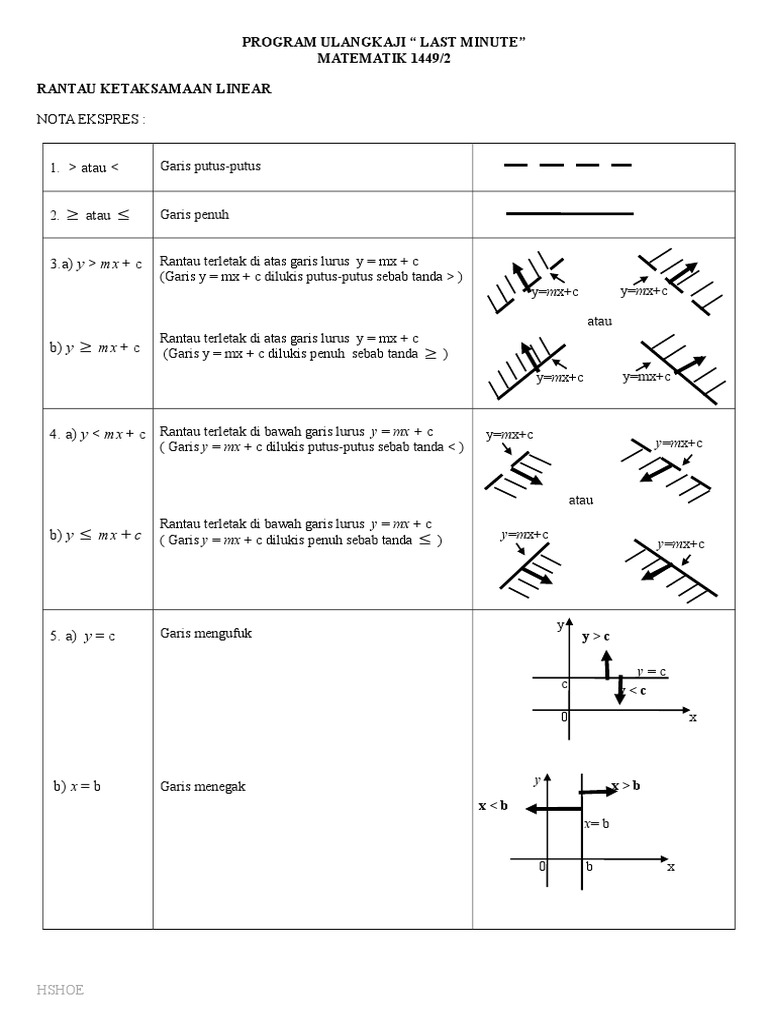 Nota Ulangkaji Spm Matematik Tingkatan 4 Tingkatan 5 2 3 Rantau Yang Mewakili Ketaksamaan Dalam Dua Pemboleh Ubah
